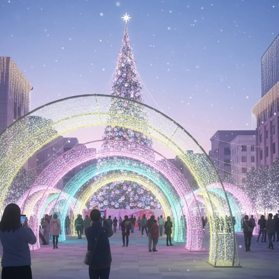 메인 광장의 거대한 트리와 화려한 일루미네이션, 그리고 알록달록한 조명 터널은 인생 사진을 남기기에 완벽합니다.
