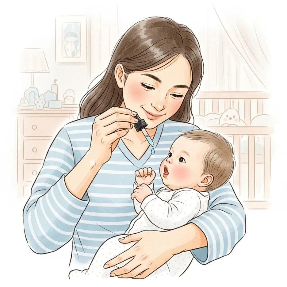 보통 신생아용 유산균은 드롭 또는 분말 형태로 제공되는데, 분유나 모유에 혼합할 경우 유산균이 50도 이상의 고온에서 사멸될 수 있으니 온도에 주의해야 합니다.
